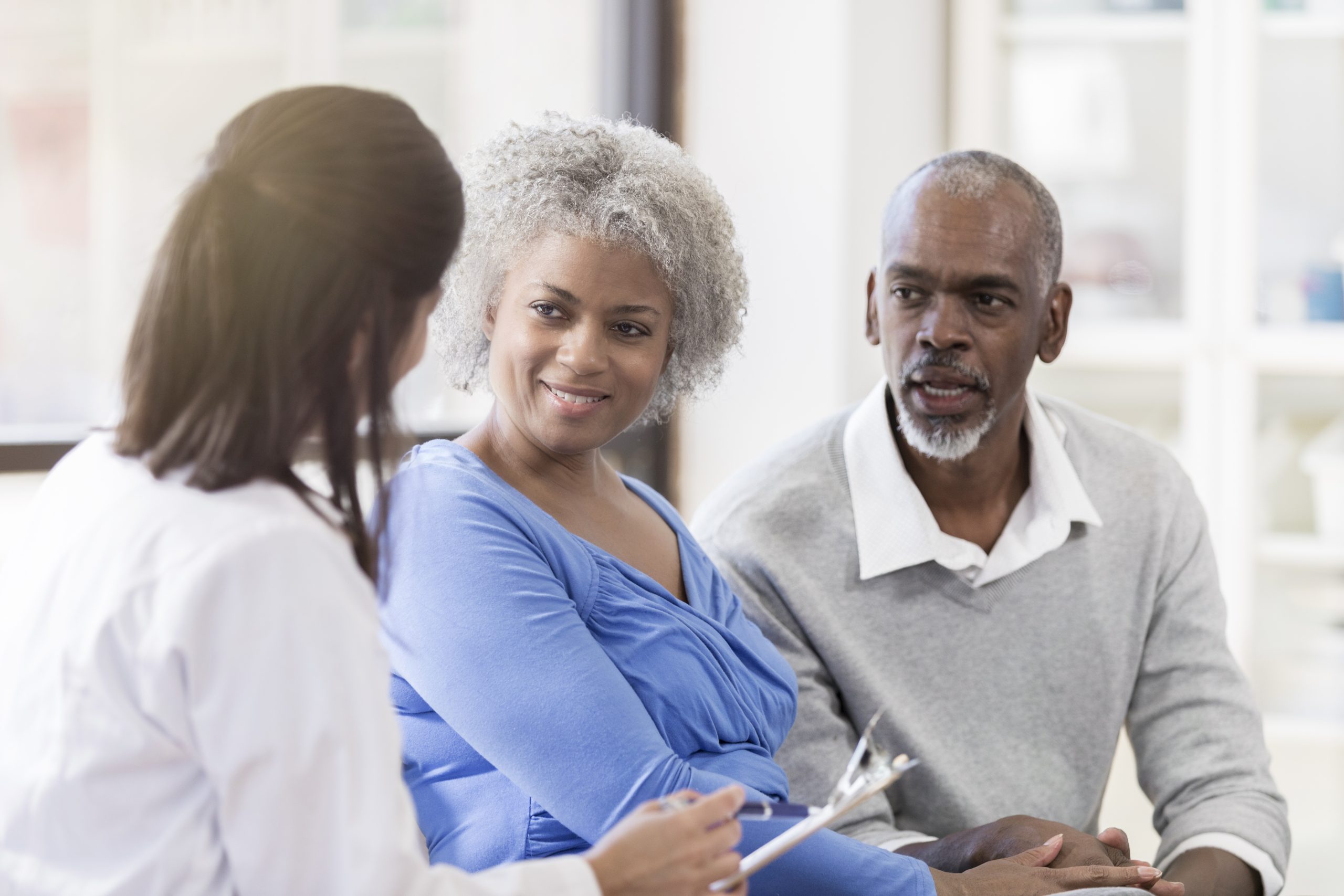 Cheerful senior couple receive good news from doctor
