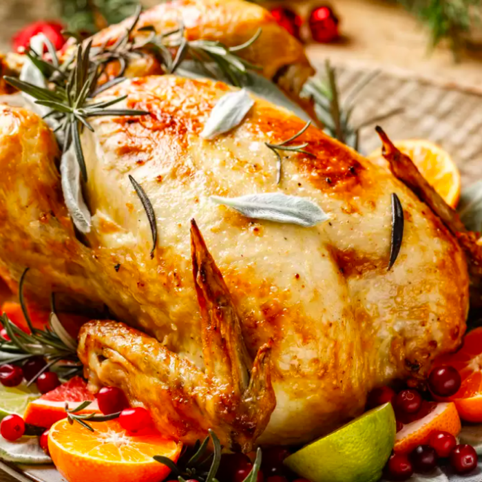 No matter how many guests you host this season, a golden roasted whole turkey makes any holiday table complete. This herbed citrus turkey is roasted with fresh fruit in the cavity to keep it moist and flavorful.