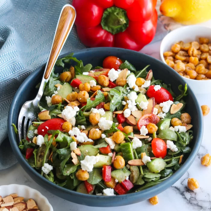 Looking for a healthy salad recipe that doesn’t skimp on flavor? Our Mediterranean Chopped Salad combines roasted chickpeas, feta cheese, fresh vegetables and a bold za’atar vinaigrette for a medley of amazing flavors.