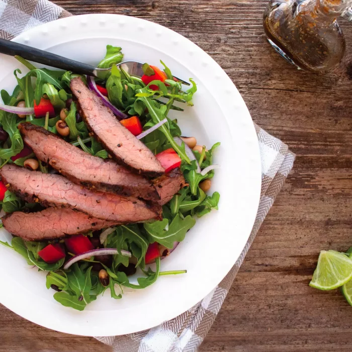 Here’s a delicious meal of succulent grilled steak and refreshing spinach and bean salad that will keep both meat and veggie-lovers happy and healthy.