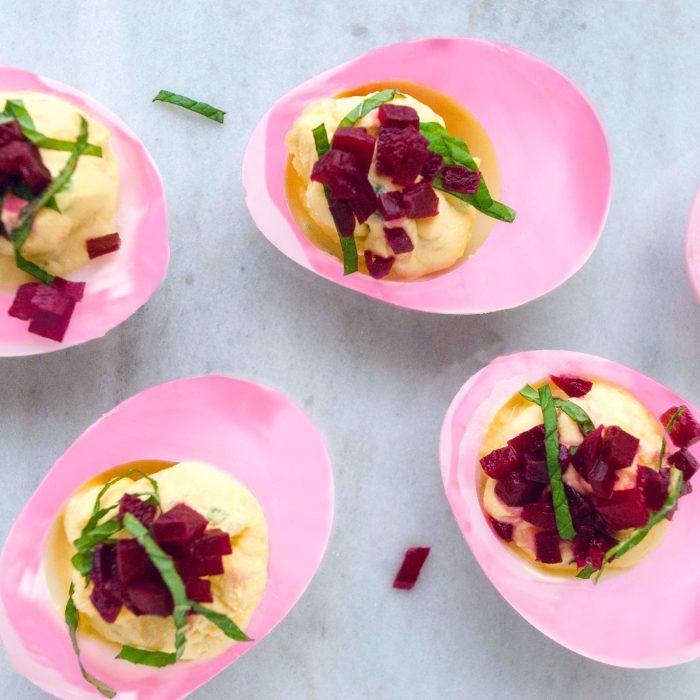 Whether you’re hosting a brunch or just looking for a pretty appetizer, try these pink deviled eggs. Roast the beets and boil the eggs the night before for a quick prep the next day.