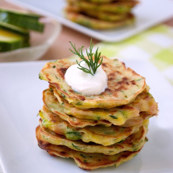 Healthy zucchini replaces potatoes in these flavorful latkes with smoked salmon. Pair them with a tossed salad for a heart-healthy brunch or light lunch.