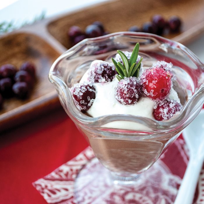 Sparkling cranberries make this chocolate dessert a special holiday treat. This recipe uses 2 kinds of sugar: Granulated sugar to soak the cranberries and raw sugar to decorate them with a frosty, snowy look.