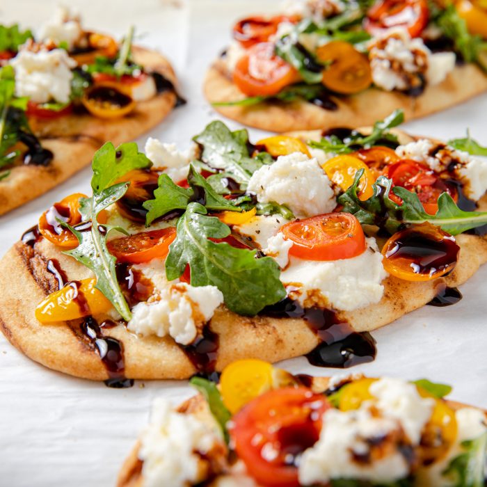No need to call for delivery when you can make these delicious flatbread pizzas at home. With just a few ingredients you can have a heathy, high protein, high fiber pizza in minutes.