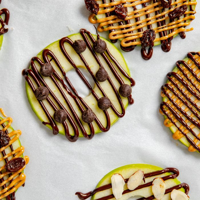 When the kids come home looking for a quick after school snack, these peanut butter apple treats will keep them going til dinner. Try different healthy toppings for crunchy, sweet texture and flavor.