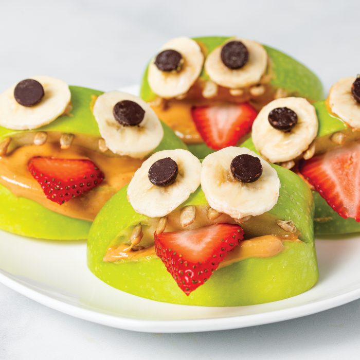 You're little goblins will be thrilled to eat some healthy Halloween snacks when you put these Apple Monster Mouths on their plates. Made with apples, peanut butter, strawberries and bananas, these scary treats will get your trick-or-treaters off to a healthy start.