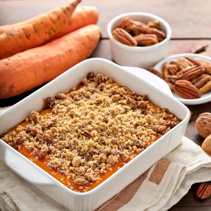 Don’t smother your sweet potatoes in marshmallows. Try this delicious sweet potato side instead. Crunchy pecans and a touch of vanilla make this a delicious Thanksgiving side.