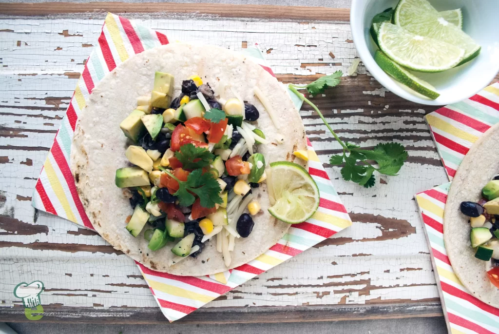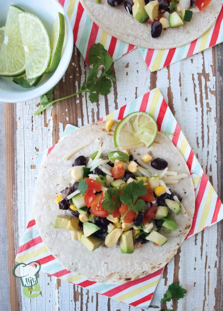 This yummy tostada recipe makes a satisfying healthy meal. Black beans, zucchini, corn and cherry tomatoes load up this meatless recipe with protein and color.