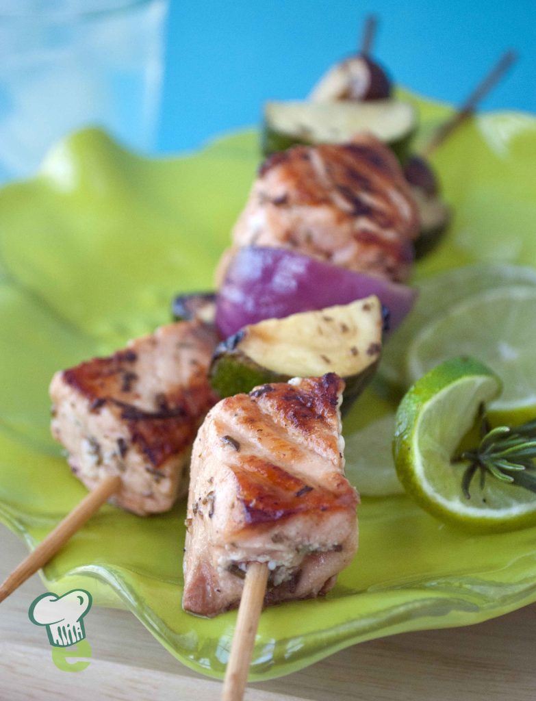 Don't let meat or poultry shortages stop your backyard grilling plans. Try these easy and delicious salmon kebabs. Livened up with a refreshing rosemary lime marinade, these kebabs also taste great with tuna or any thicker cut fish you have available.