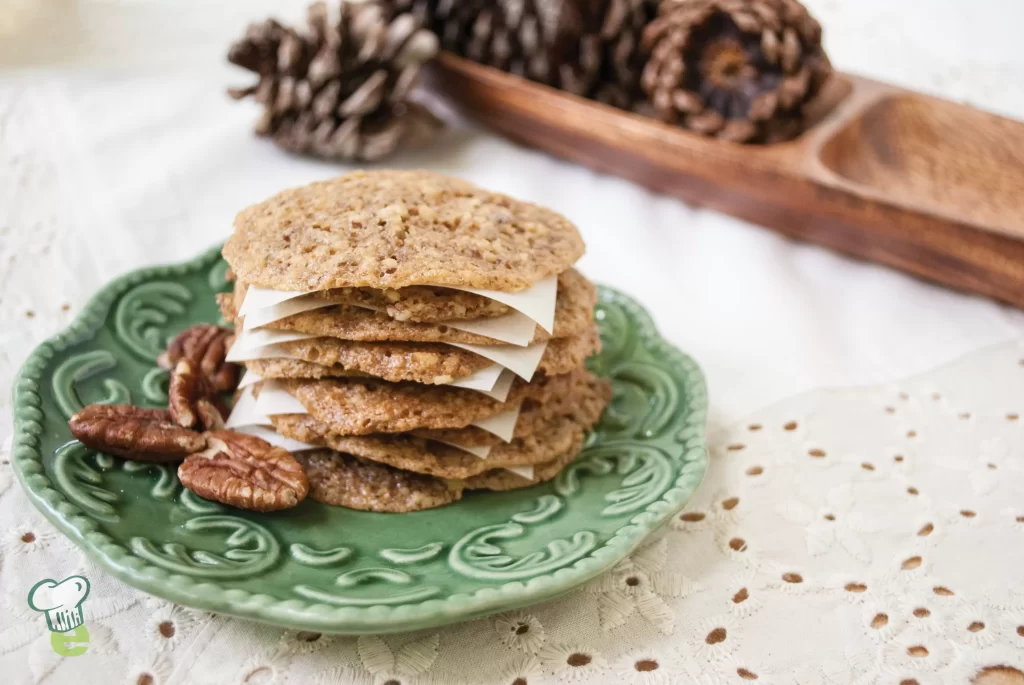 Delicate and light, these yummy pecan lace cookies are a sweet treat that are under 50 calories a serving.