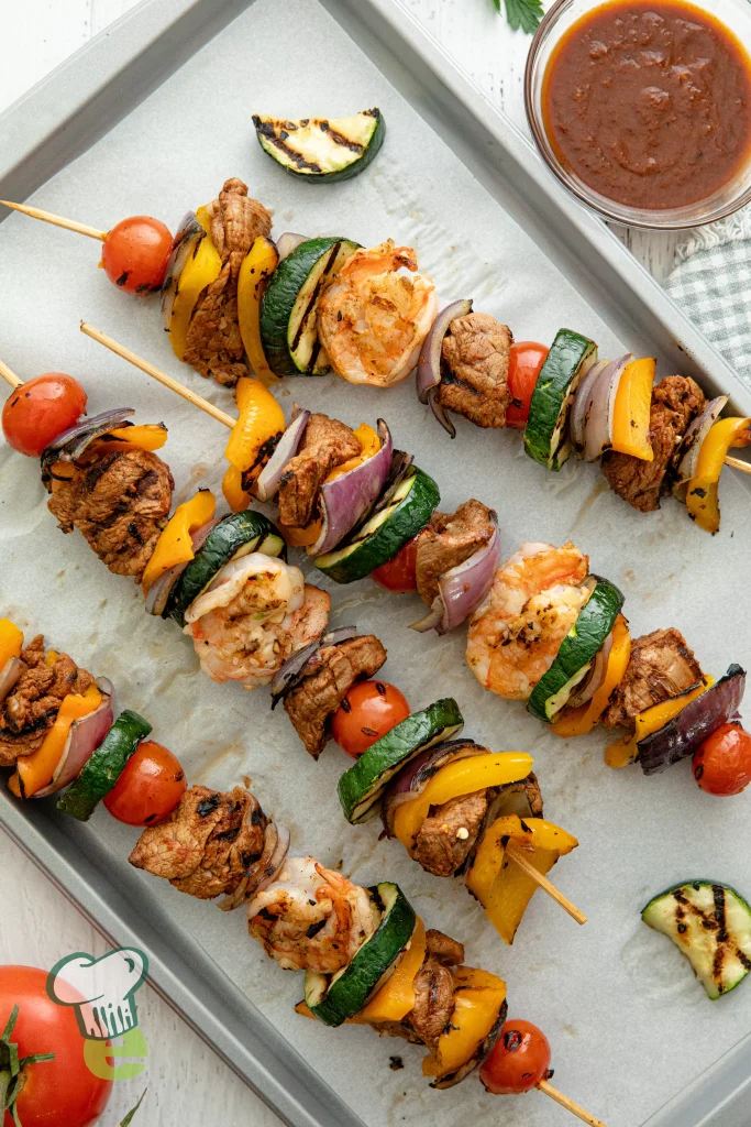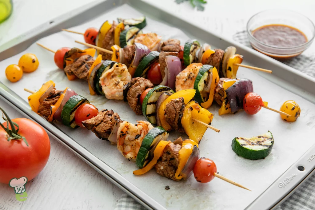 Pull out all the stops with these top-of-the-line Surf and Turf Kebabs. Marinate the meat and shellfish with a bloody Mary marinade for tender steak tips and flavorful shrimp.