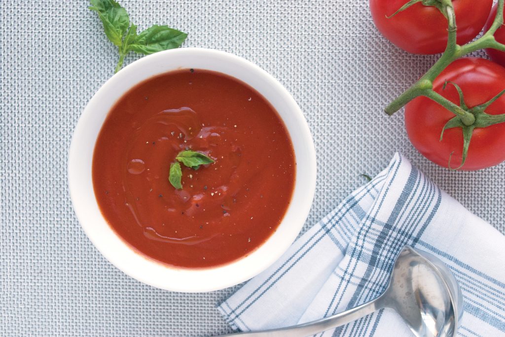 Here’s a healthy soup that’s quick and easy. For a creamy tomato soup without high fat, add almond, rice or soy milk.